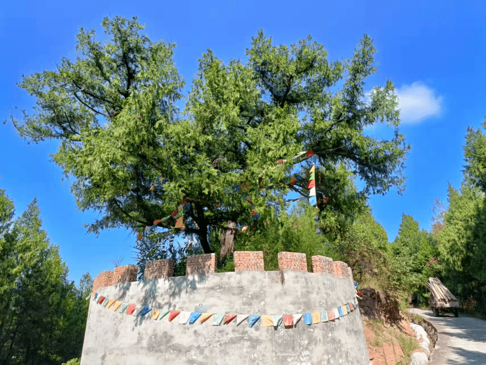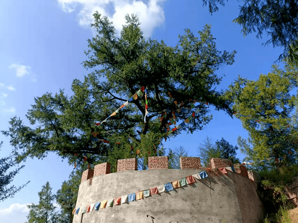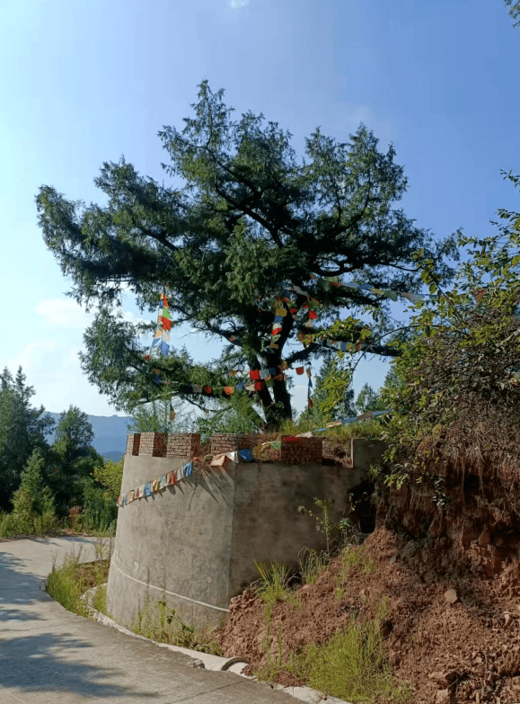 赛虎每次都会把女儿送到1公里外的山梁那个被称之为莲花古柏那里,又在女儿放假时提前跑到那里去等候(曹福章 供图)