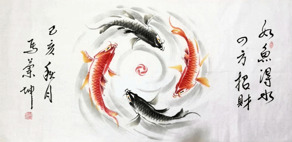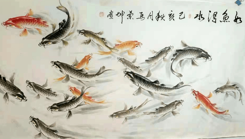 众所周知,画鱼必须要活泼自然,画出鱼儿游泳时的形态;见到水中鱼的身影飞驰而过,或浮出水面,张口泛泡,意态悠闲自在。在青荇和水藻之间游转沉浮,在清清的水流之中恣意荡漾。若如此,便是上品之作,反之,如果是画不出鱼儿的神情,而只是外形画准,那么即使画的是溪水和山涧中的鱼,也和砧板上的死鱼没什么两样。