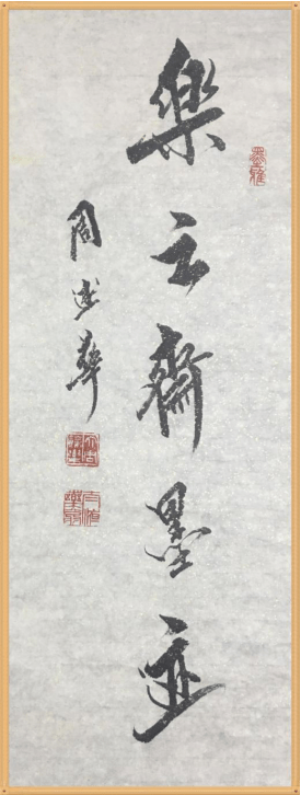 那是2011年,我与天津画院一级画师陈学智老先生一起,为天津蓟州独乐寺接待室作笔会时所作。那天,陈老画了一幅3x6尺的布袋和尚图,俗称大肚弥勒佛。