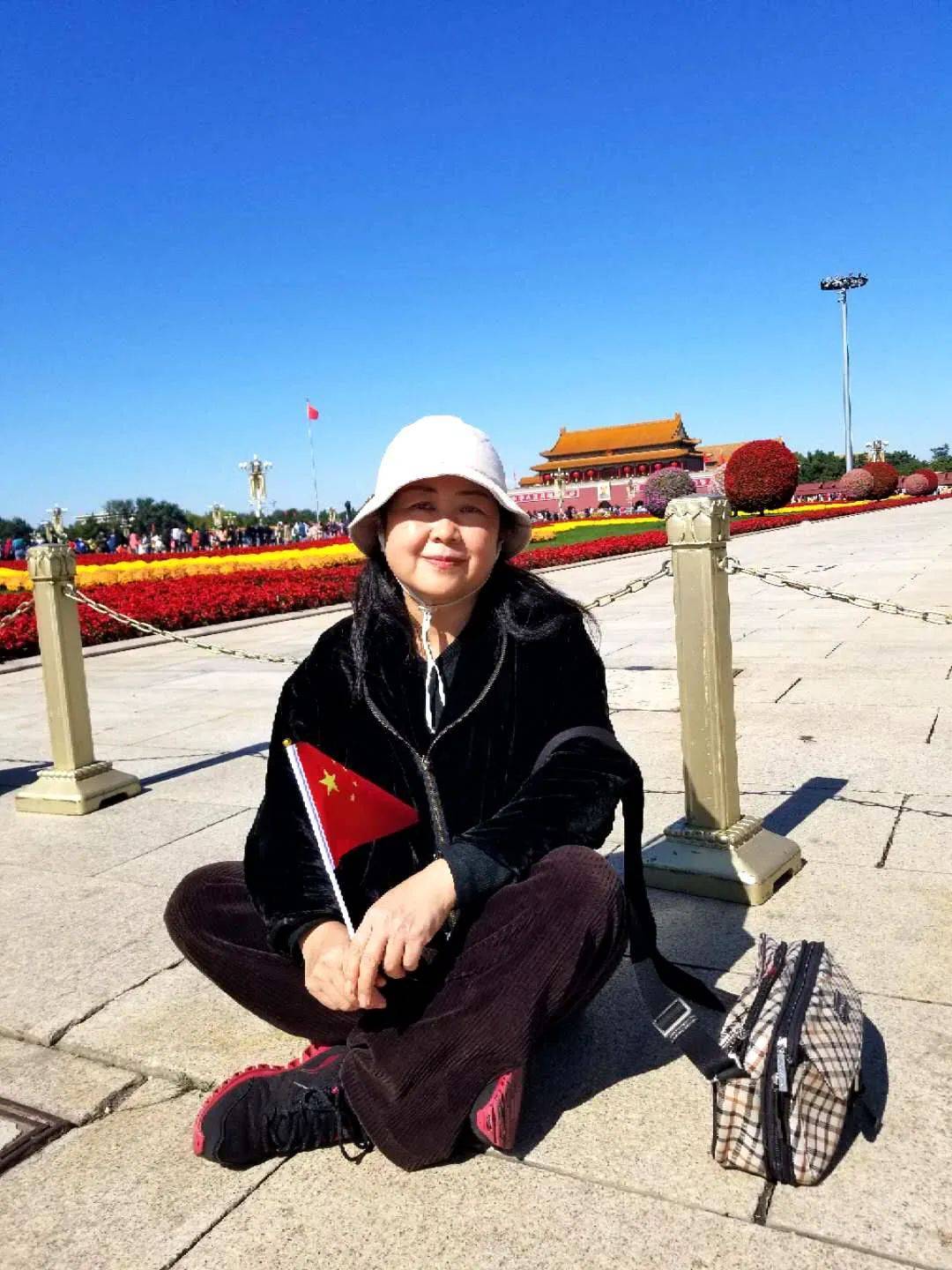 作者李燕席地坐在天安门广场上