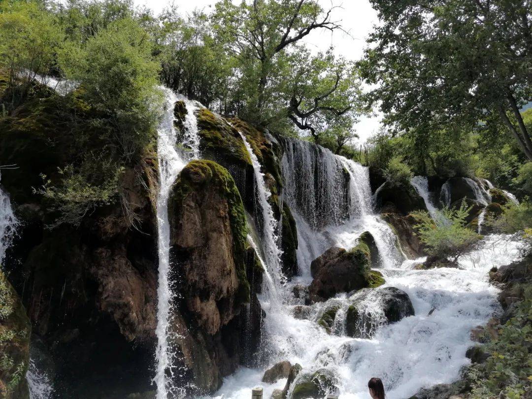 我们路过诺日朗瀑布。它是中国最宽的瀑布,也是八六版电视剧《西游记》片尾取景处。在盛夏阳光与水雾的映衬下,诺日朗“飞出两山间,直泻百尺崖”,幻化成一幕波澜壮阔的画面,美不胜收。