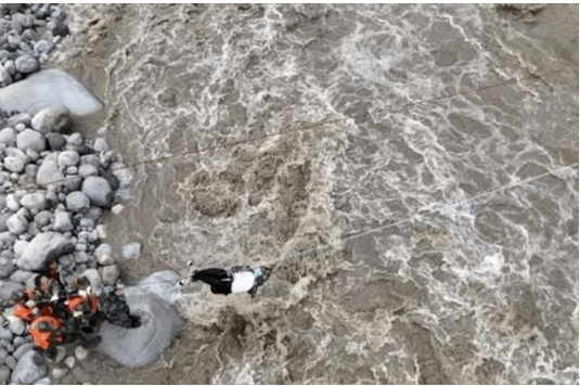 绳桥接木运伤员。