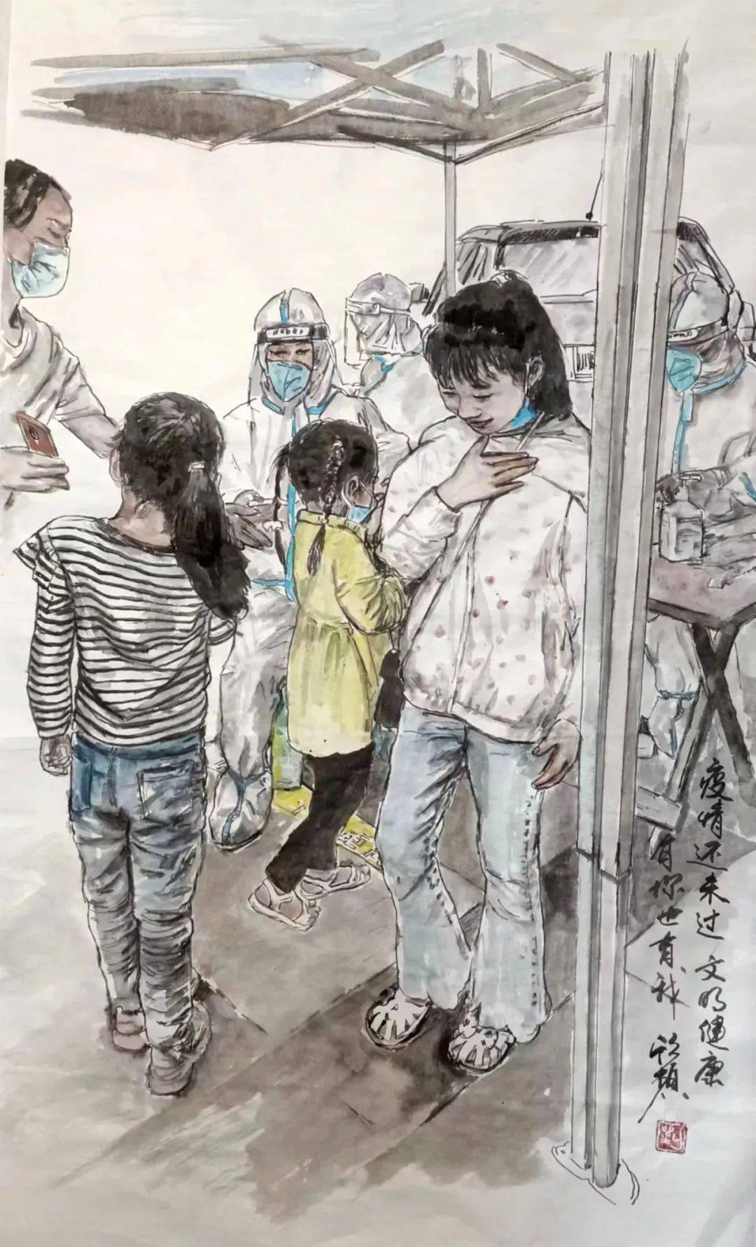 《疫情还未过 文明健康有你也有我》 国画 刘欣频 作(图片来源:南充市美术家协会)