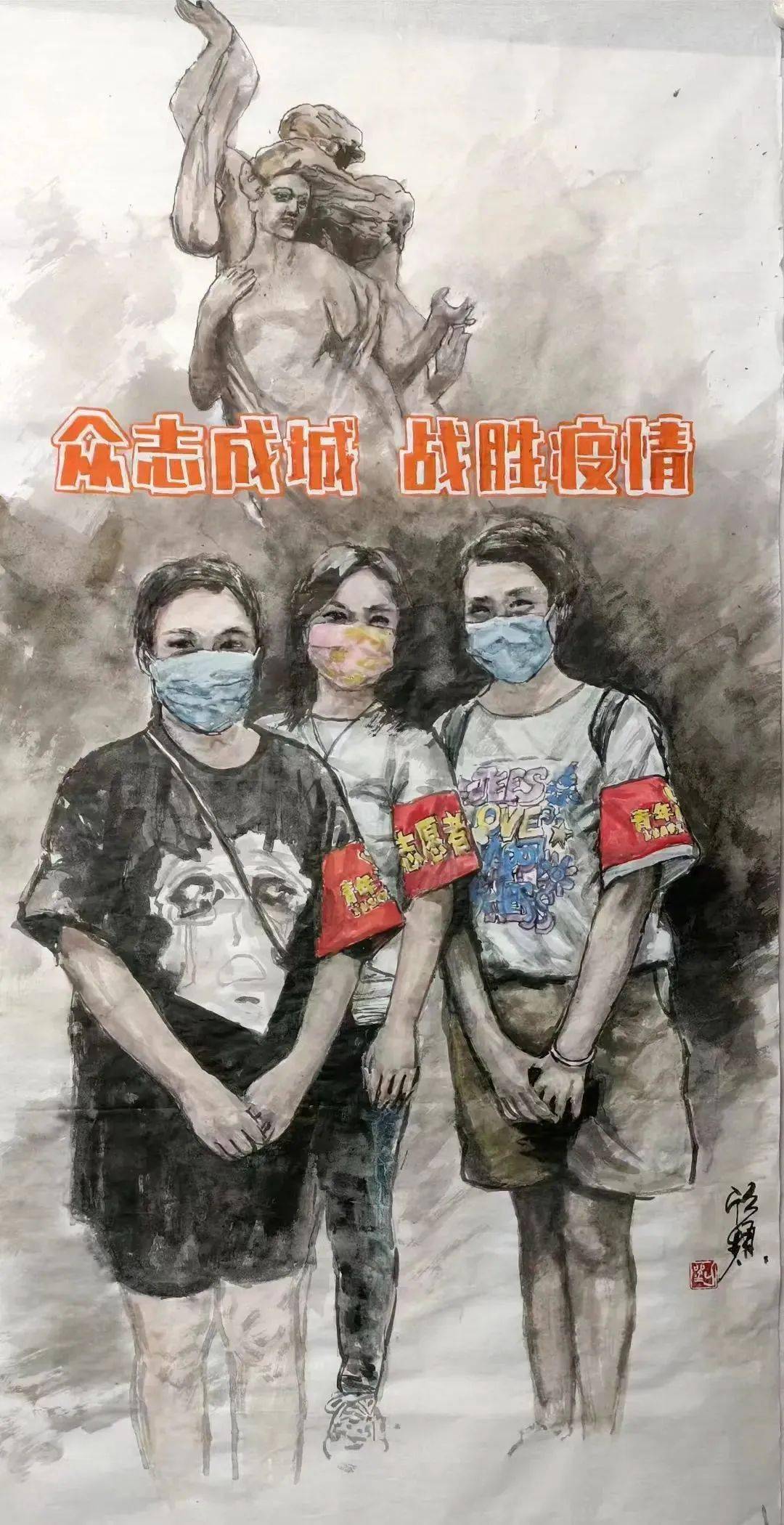 《众志成城 战胜疫情》 国画 刘欣频 作(图片来源:南充市美术家协会)