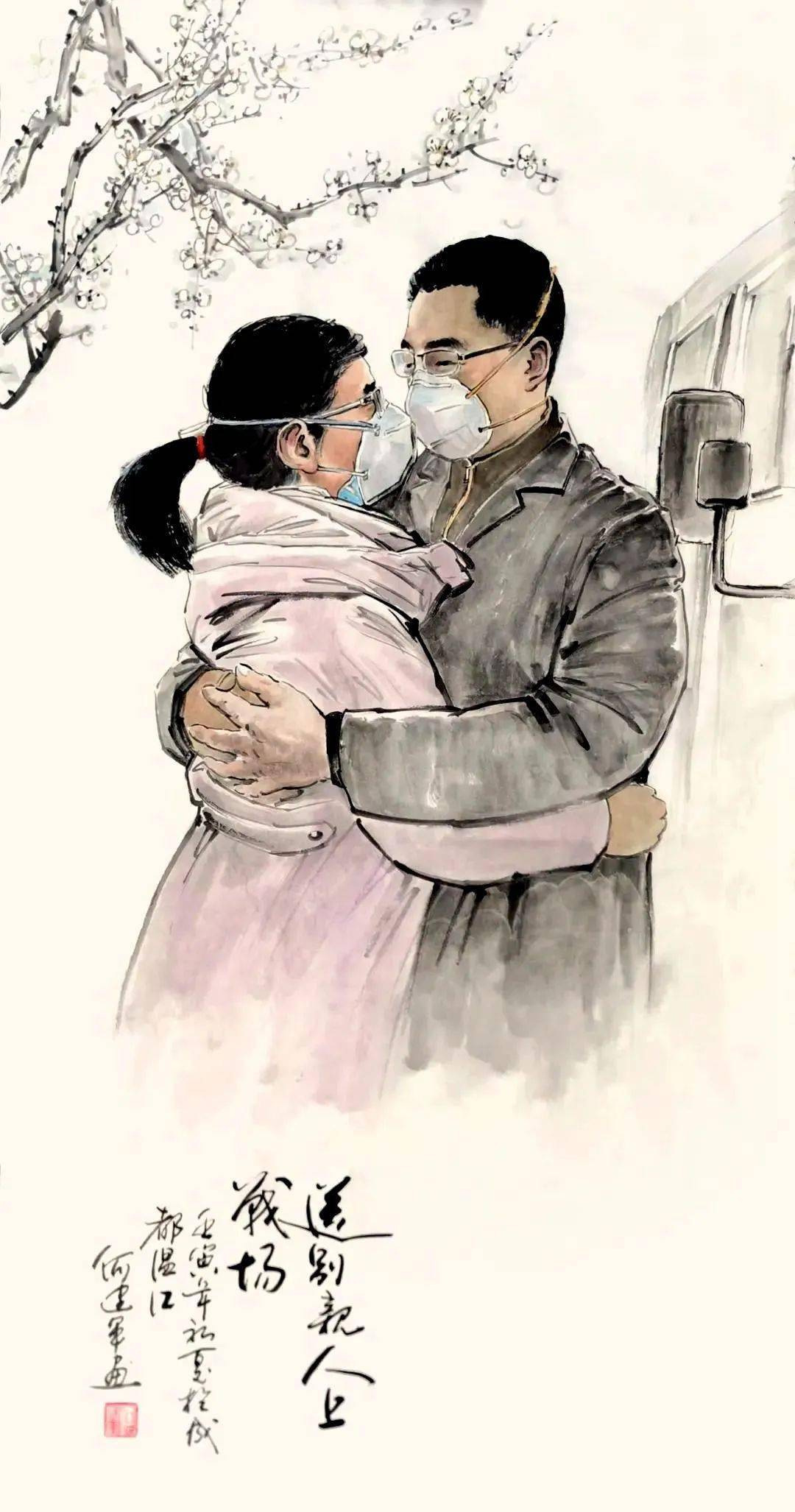 《送别亲人上战场》 何建军(西岭画院)作(图片来源:四川省老年书画研究会微信)