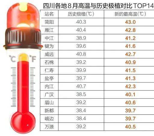 四川各地2022年8月高温与历史极值对比(图片来源:华西都市报)
