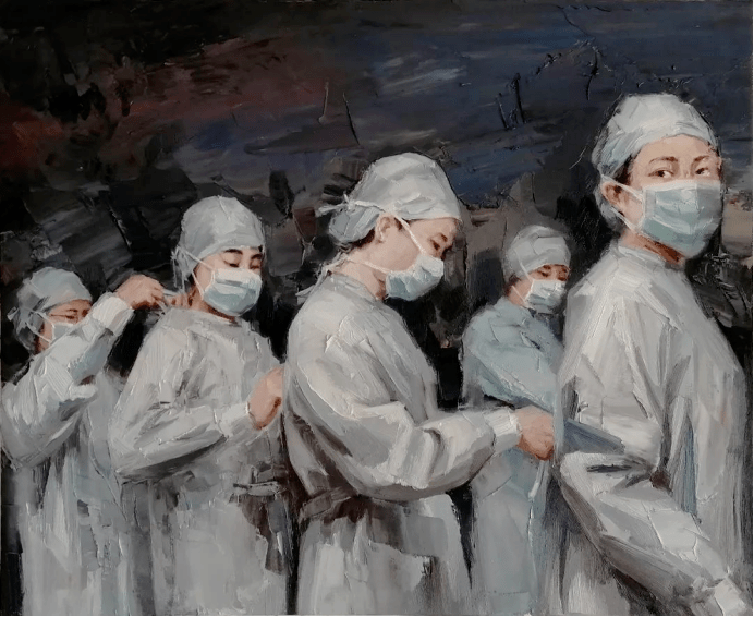《众志成城 战胜疫情》 (国画) 刘欣频 作(图片来源:南充市美术家协会)