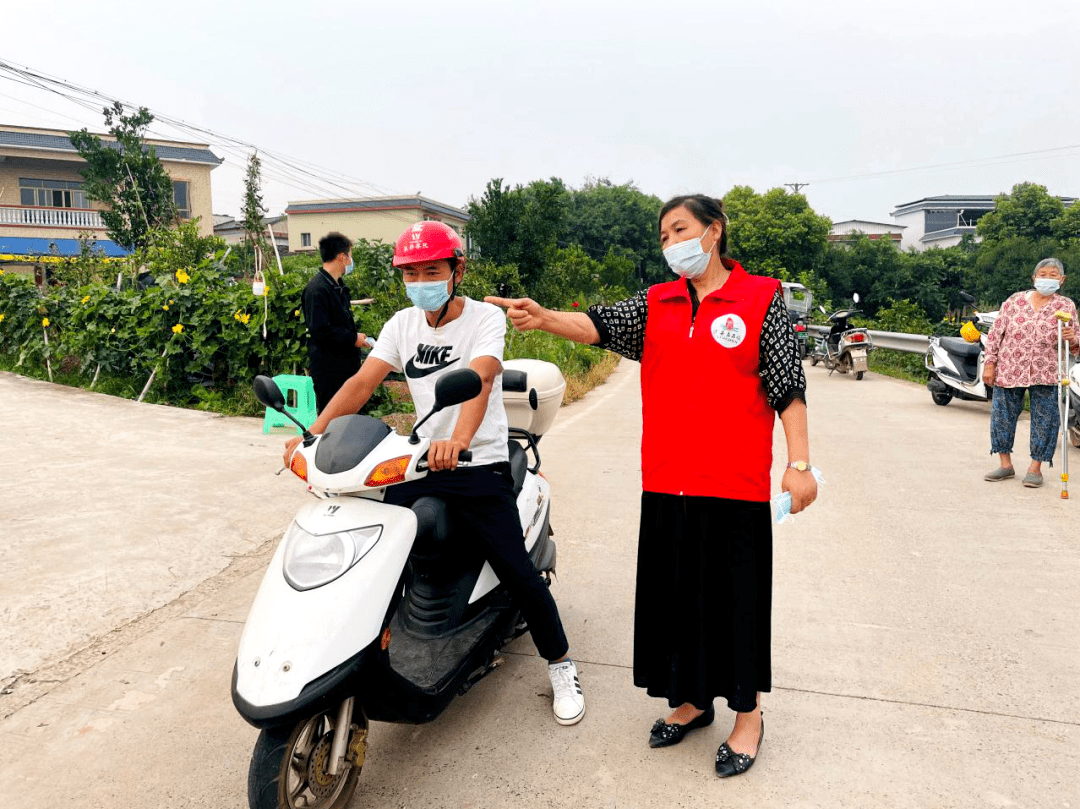 志愿者刘照莲劝导群众