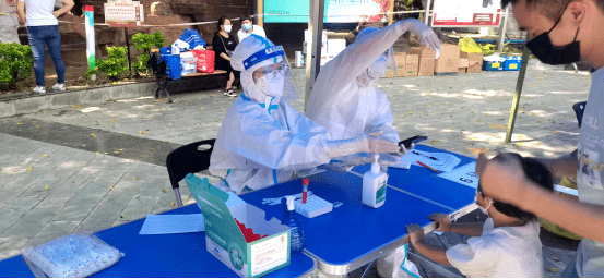 正在给居民做核酸检测的医护人员