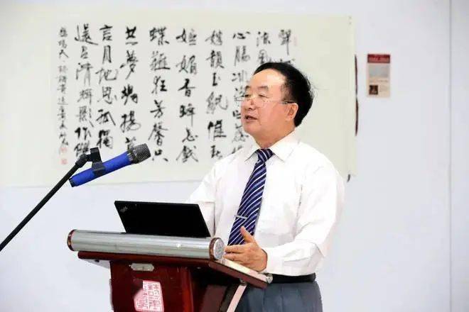 2022年9月30日,中国散曲研究会会长、中国韵文学会副会长、四川师范大学杰出教授赵义山在“诗吟华夏 笔写春秋——赵义山先生学术教育创作40周年纪念书画主题创作邀请展”开幕式上致辞(蒲建宇 摄)