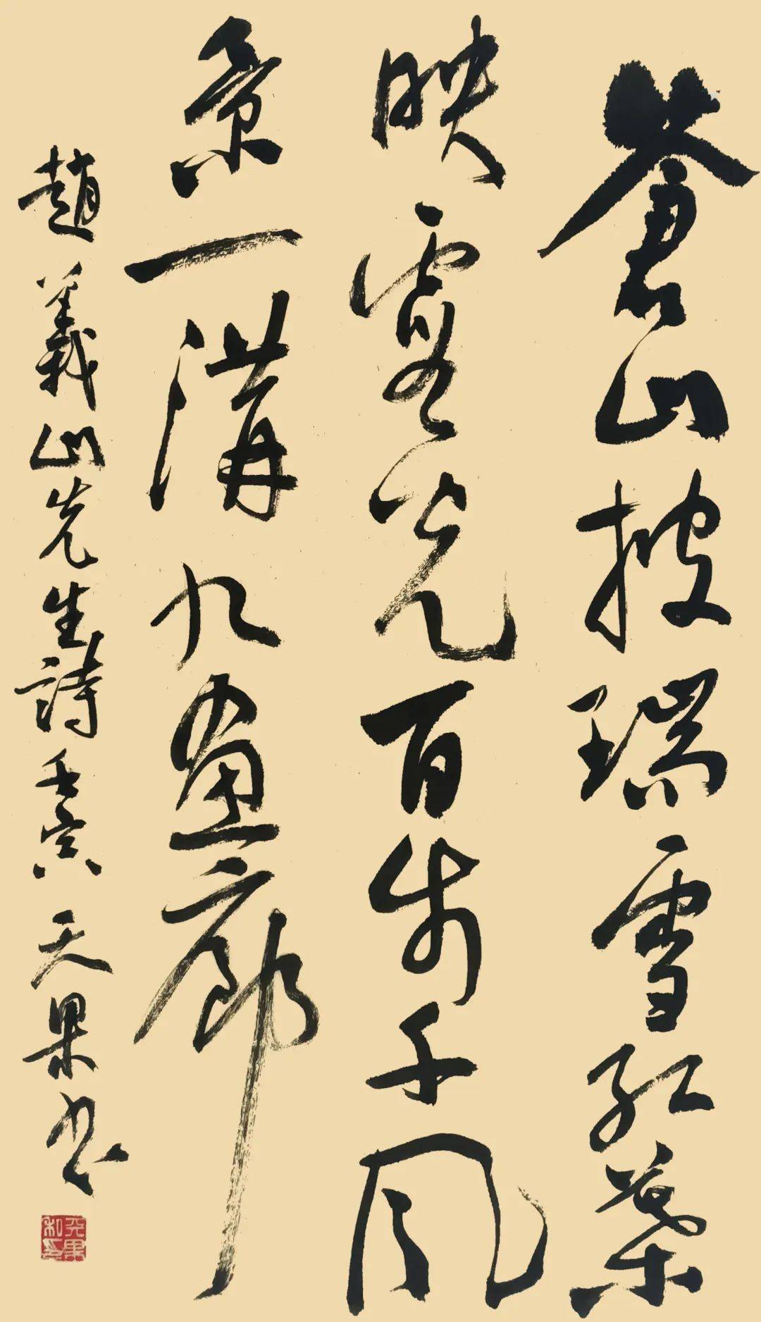 赵义山教授诗作文采斐然,蓝天果先生书作神采飞扬,两相叠加、珠联璧合,给人以强烈的艺术感染力。