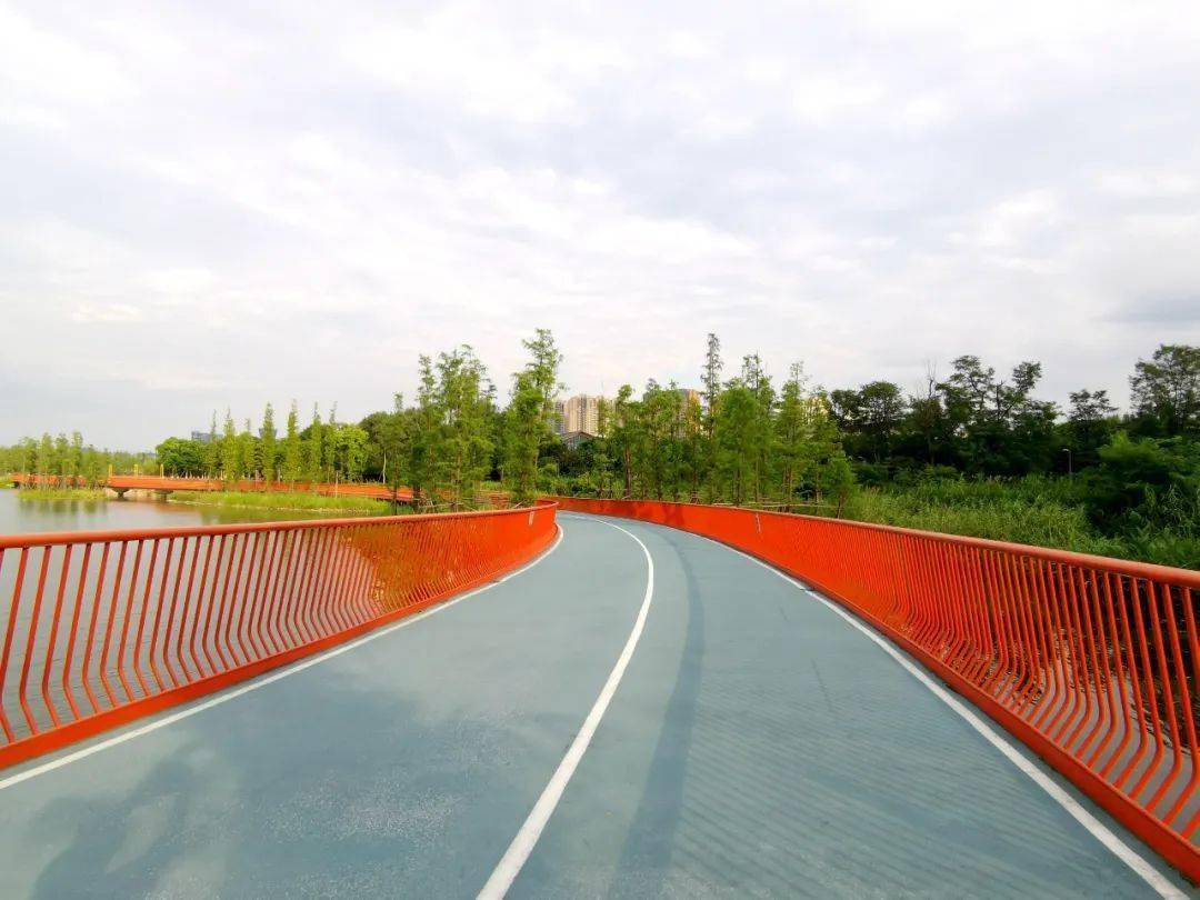 成都锦城绿道是一条沿成都绕城高速公路修建的环城绿道,也是成都环城生态公园一级绿道,总里程100公里,沿途建有78个“一桥一景”景观桥梁,串联起桂溪生态公园、青龙湖公园、锦城湖、三圣乡等121个特色生态公园。2022年春天,锦城绿道全面完工,环城骑行,成为这个城市最靓丽的风景。
