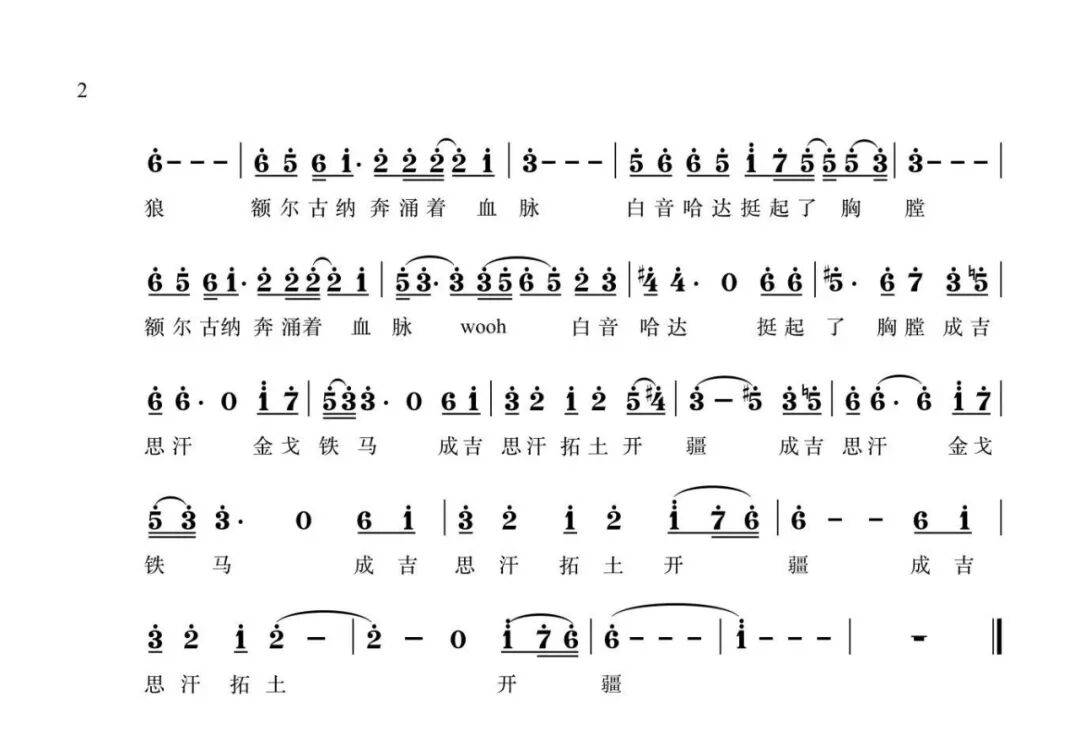 歌曲《成吉思汗》描绘了成吉思汗驰骋草原大漠、挥师远征四方的恢宏气度与磅礴景象,展开了一幅开疆拓土的波澜壮阔的历史画卷,彰显了蒙古高原人民豪迈、勇敢、坚韧不拔的民族特性与气概。