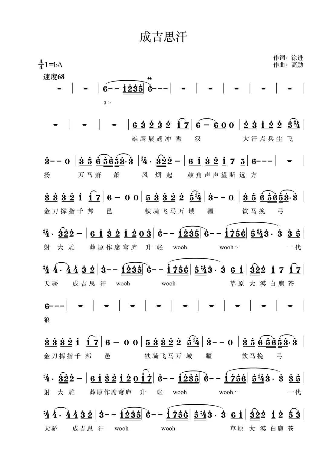 歌曲《成吉思汗》由徐进作词,青年作曲家高勋作曲、编曲,烟嗓船长演唱。