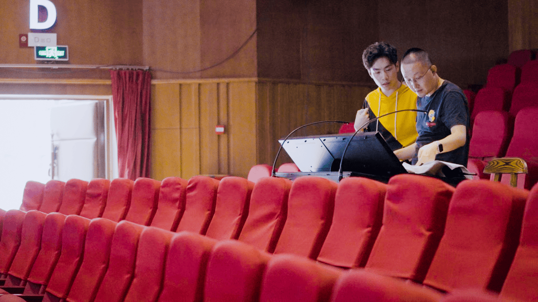 成都市川剧研究院二级演员、《姚安杀妻》导演王裕仁(左)在排练现场(成都市川剧研究院 供图)