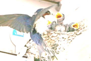 1983年我家(公共)阳台上飞来一双小燕,筑巢生子,1984年被人捣毁。我难忘至今,乃为此作。