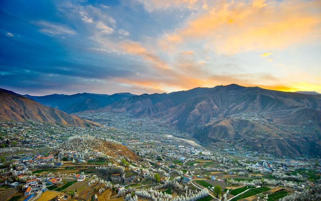 蜿蜒飘拂的梨花海,如爆着响声的玉佩,点燃耀眼的浮冰。云帛重锦,这是大地的哈达,献给春天的吉祥祝福。它就横亘在川西,横亘在四川阿坝藏族羌族自治州的高原之上,有吐尽天下芳香的豪气。