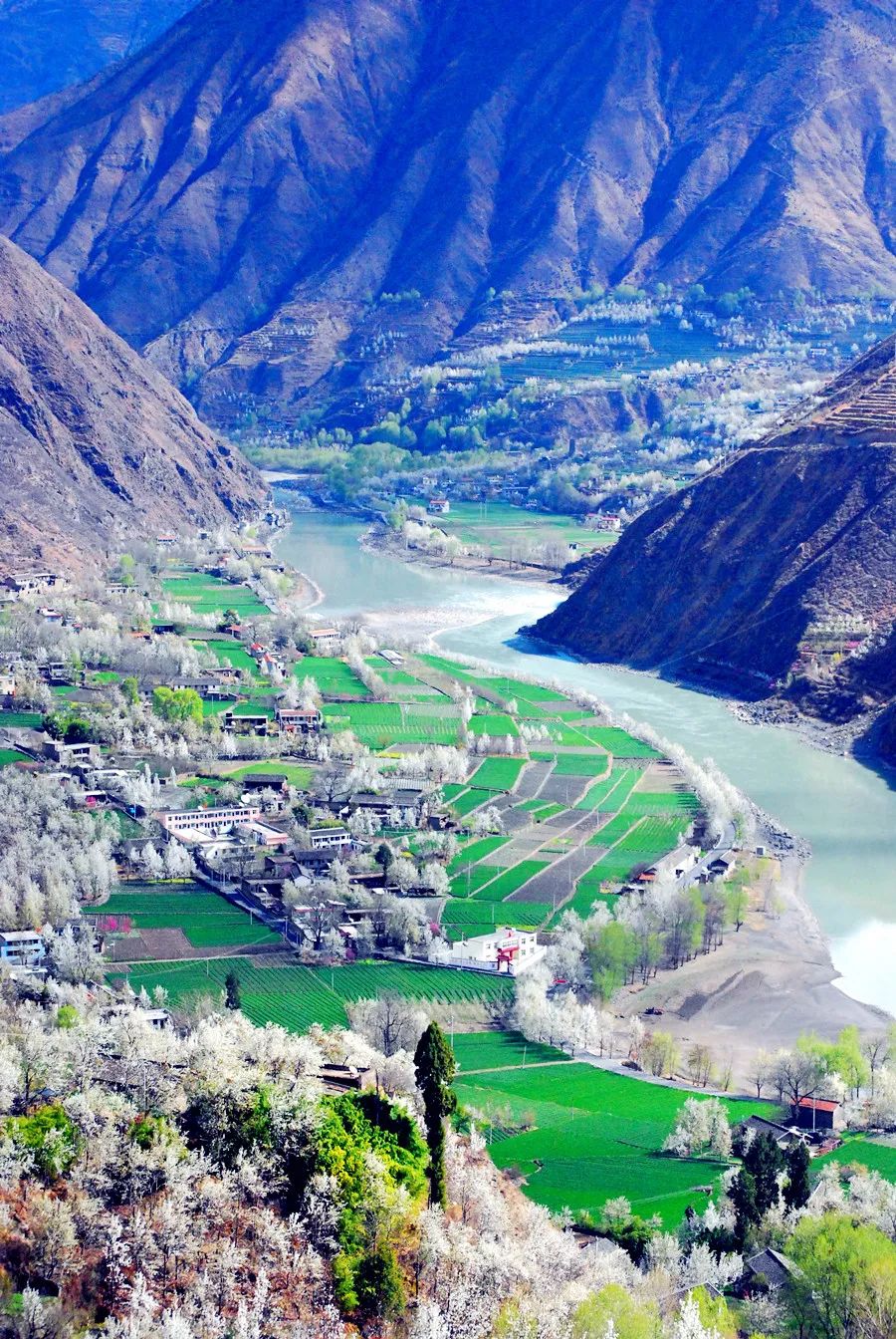 沿着梨花的长廊,织着河流的花环,这里的大金川河谷已经完全是茫茫花海。沙耳乡、咯尔乡、庆宁乡、勒乌乡、万林乡……数不清的千村万寨,全笼罩在梨花盛开的赫然气势中,梨花烂漫,粉妆玉垒,雪浪翻飞,不可遏止。
