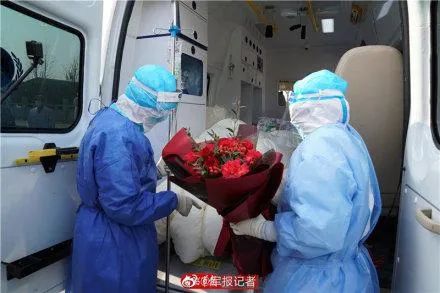 3月21日,84岁的 刘婆婆走出武汉欣 悦医院康复驿站 ,与日夜照顾她的医护人员依依惜别(视频来源: 中国新闻网)