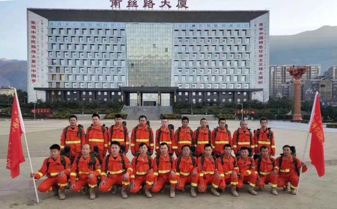 3月30日,宁南县森林草原专业扑火队21位队员赴西昌灭火前在宁南县留影(本文作者罗瑾供图)
