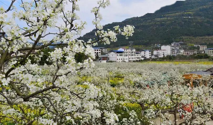 这时高悬在村口的高音喇叭里传来《你不到来花不开》那充满深情的歌曲,歌声在柔柔的花香里回荡,在我们的心里流淌、澎湃。此情此景,让人心底陡生一种诘问,这不就是我一生中苦苦问寻的香格里拉么?到底是谁的嫣然一笑盛开了如絮的梨花涂染了天边的朝云?到底又是谁的抬头让这片温润的土地花香鸟语、一片明朗?