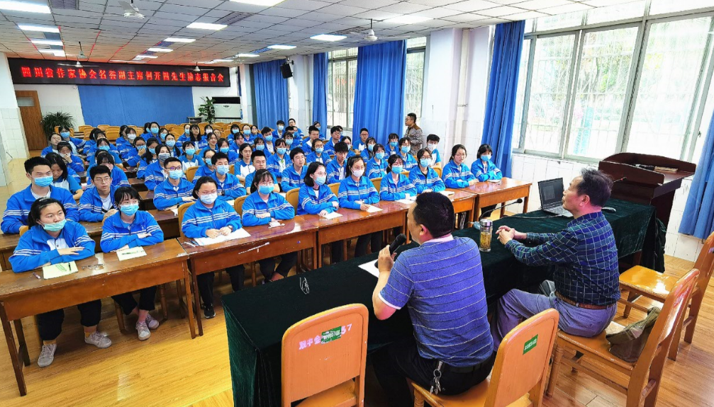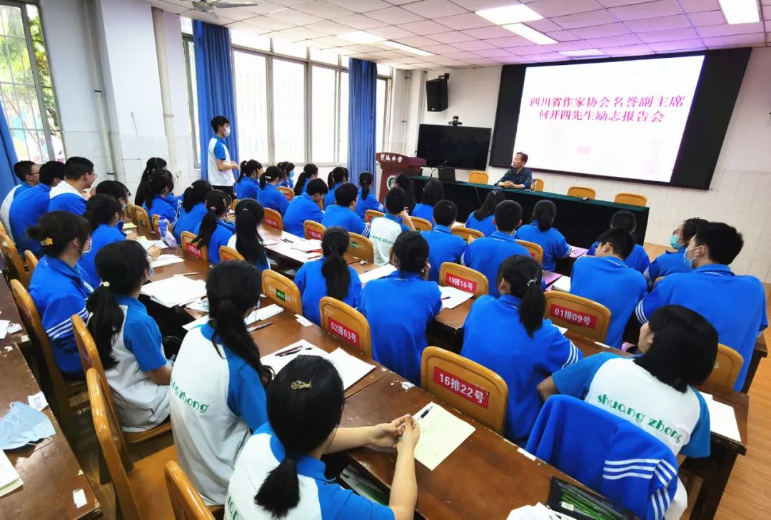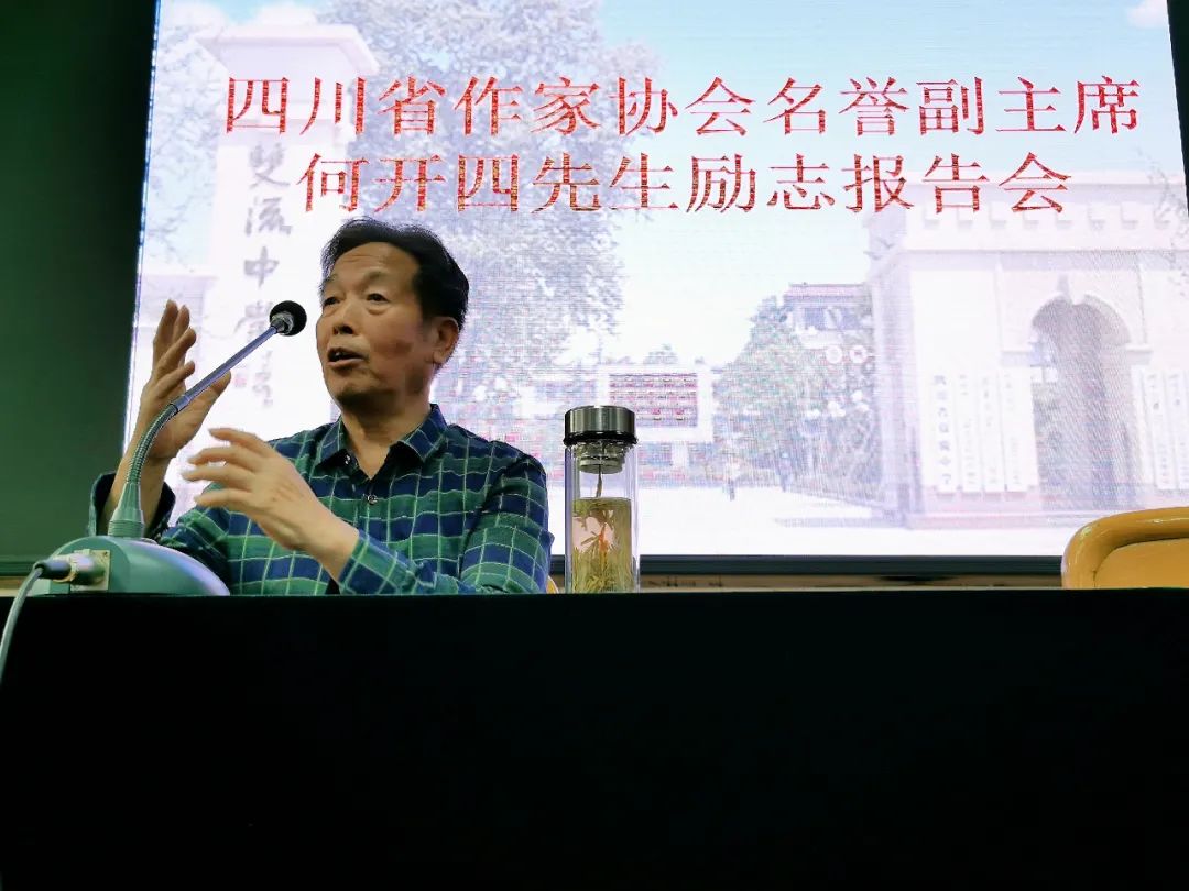 2020年5月13日,何开四先生在 四川省双流中学作励志报告( 杨明强 摄)