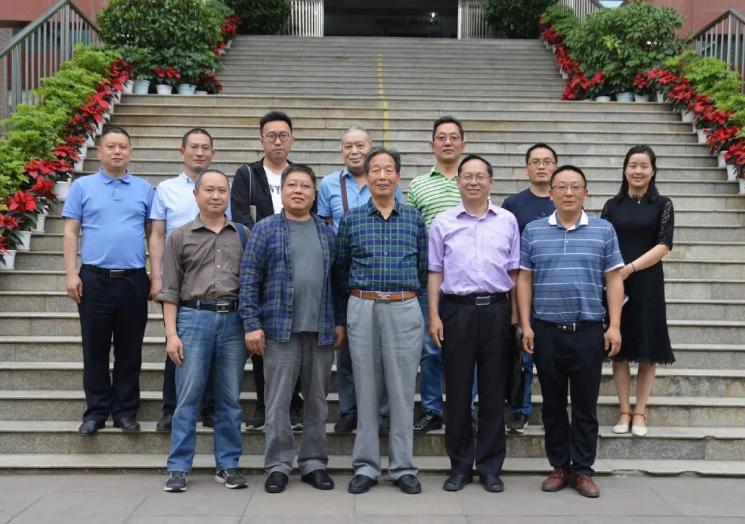 2020年5月13日,何开四先生(前排中)在四川省双流中学与参加文学交流座谈会的代表合影留念(杨明强 供图)