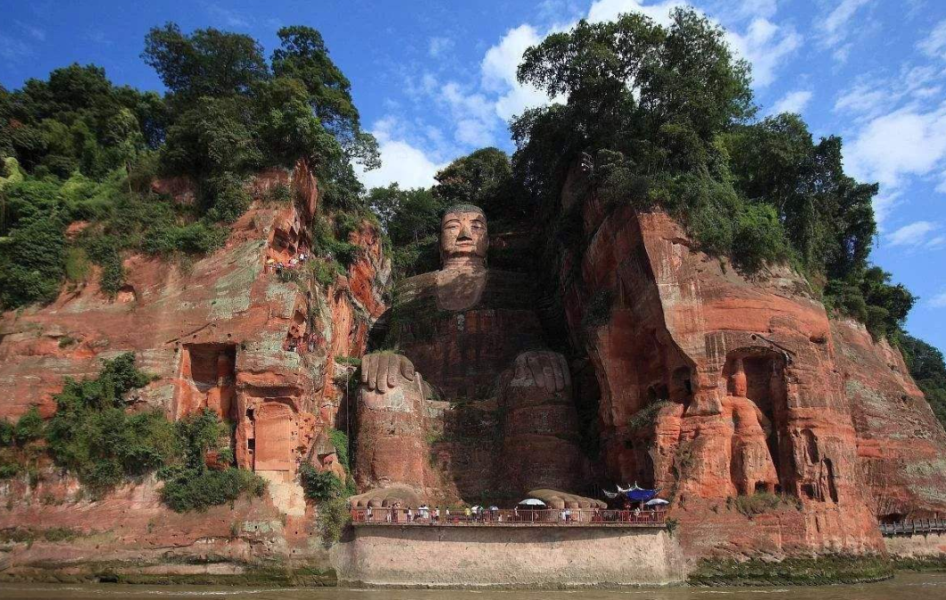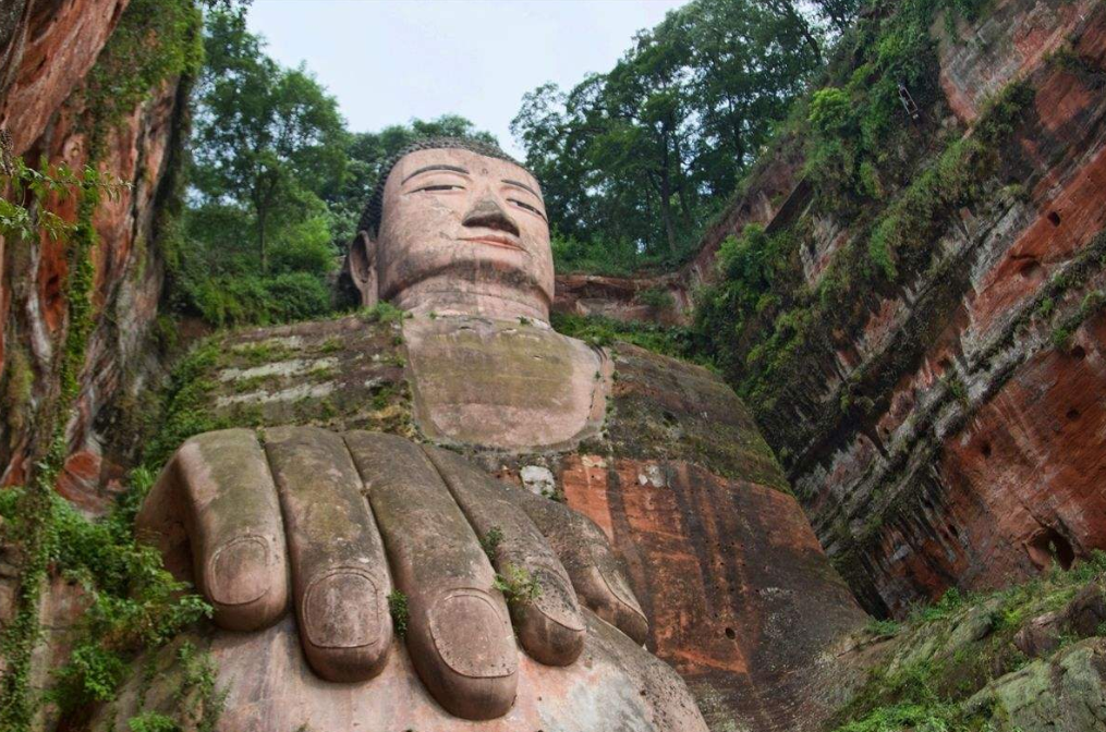 乐山大佛不愧是世界第一大坐佛,站在大佛头顶旁,许多人都不敢往下看。在又高又陡的凌云栈道入口,生产队的老人们更是死活不敢下去。多亏有人专门背人下栈道做生意,一个人五角,包括我奶奶在内的老人们这才如愿下到了大佛脚底。