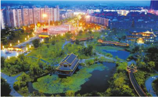 鸟瞰位于隆昌城中的莲峰公园,景城一体(图片来源:四川日报)