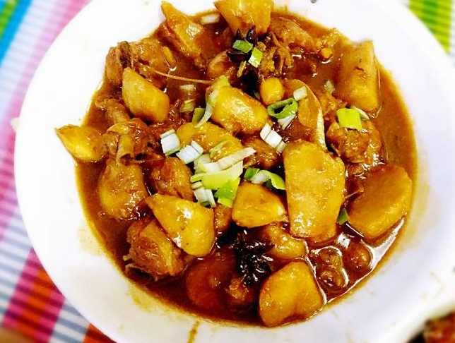 我们在屋里和老丈人摆谈家事,隔壁灶屋里“嘭、嘭、嘭、嘭”的响,像是在切腊肉。“饭好了,饭好了,”没过多久,就听丈母娘在大声喊吃饭了。进堂屋一看,小方桌上早已摆好了饭菜:一个芋头烧鸭子,一大盘韭菜烩老腊肉,一个炒干野蕨菜,还有一小盘泡笋子和一个小白菜汤。野蕨菜和笋子是丈母娘上山讨的,老腊肉是自家的,都是地道的生态农家菜。