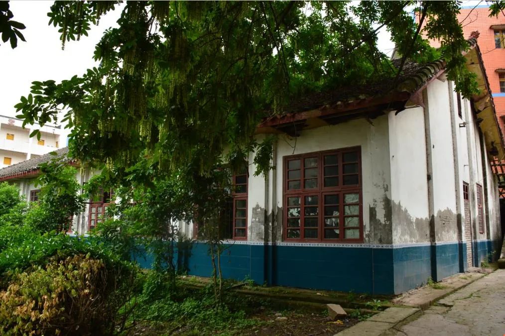 那时的蓬安县杨家中学,所有的教室、教师宿舍、教师办公室,还有饭堂都是屋顶盖青瓦、硬山头、砖木结构的大平房。数座大平房中间是宽阔的过道,过道两边都是若干大教室的布局,推窗见绿树闻鸟鸣。发源于凉风垭的清溪河环绕着大半个校园,校园没有围墙,掩映在一片片柑桔林和高大的法国梧桐树中,非常幽静,是一个读书的好地方。
