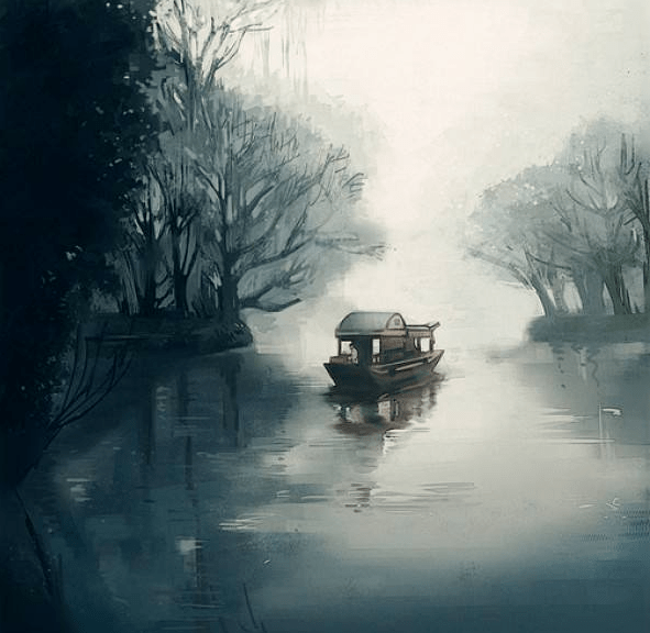 霜月镀满江水滔痕