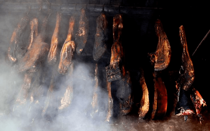 后来,外婆去世了,我也下乡到了农村。我们生产队很穷,但过了大雪,居然杀了几头肥猪,我也分得了两块猪肉。但是,我一块也舍不得吃,腌起来挂在柴火灶上头,每天烟熏着,过年拿回家,还别有一番风味味儿呢。