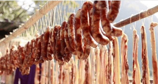 小雪腌菜,仅仅是拉开了冬季腌制“腊货”的序幕,许多家庭都会去买一些价格便宜的青菜、萝卜晾在窗台上,做泡酸菜、干盐菜、萝卜干等等。真正的大戏,是大雪之后的腌肉。尽管超市里各式腊肉香肠要有尽有,但大家还是习惯自己腌制,总觉得家中不挂点自制的腊肉香肠,就没得年味儿。