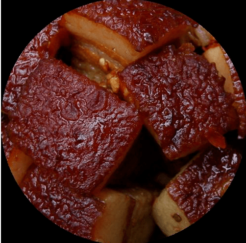 礅子肉好吃,做法也讲究。做礅子肉的食材必须是上好的五花肉,因为五花肉有精有肥,适宜于油炸和烧炖。礅子肉的做法是:先将五花肉开条,下水煮至肉皮变色,捞出沥干再抹蜂蜜。这蜂蜜首选雅安高山地区的山蜂蜜,用手掌反复将蜂蜜在肉皮上抹匀抹透,直至能用手指在肉皮上拈起一层蜂蜜汁。这样,油炸过后的五花肉皮才酥黄可口,引人食欲。抹好蜂蜜的五花肉投入油锅炸好后,再捞出切成一寸见方的大肉砣,到此,礅子肉才算初具雏形。
