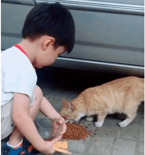 在儿子的感召和坚持下,我们向一个兽医朋友求救,买了相关的药,用家里很小很小的调羹每6小时喂一次。开始喂药时,花花耷拉着脑袋,儿子用一只手支撑它的脑袋,让它的脑袋向上立起,再使劲让花花的嘴张开,另一只手小心地握住它的小小的身子,使它不能乱动。我则把装有药的调羹,小心翼翼地倒进它的嘴里,然后把它放回事先给它准备好的窝里。每天还不适地加喂两次牛奶等流质食品。然后,儿子又去宠物店给它买了匹配的猫粮。渐渐地,小花的身体好起来了,一天天在长大。