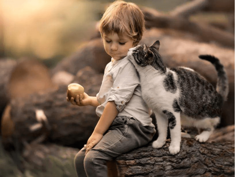 那天我和儿子兴致勃勃地在江边散步聊天,突然,儿子蹙起双眉,竖起耳朵,食指放在嘴前向我发出轻轻的“嘘”声。话头正浓的我惊讶地望着儿子。“喵—喵—”我也侧耳倾听,不知是哪儿传来细弱的声音。我与儿子循声而去,在路边一棵树下,一只与拳头大的毛绒绒的黑白相间的小东西正躺在树桩下,微闭双眼,奄奄一息,发出微弱嘶哑的声音:“喵——喵——”“妈妈,是一只被遗弃的小猫,好可怜哟!”儿子用带着祈求的眼光望着我。“我要带它回家!”话还未说完,儿子就蹲下身子,把那小东西抱在怀里了。