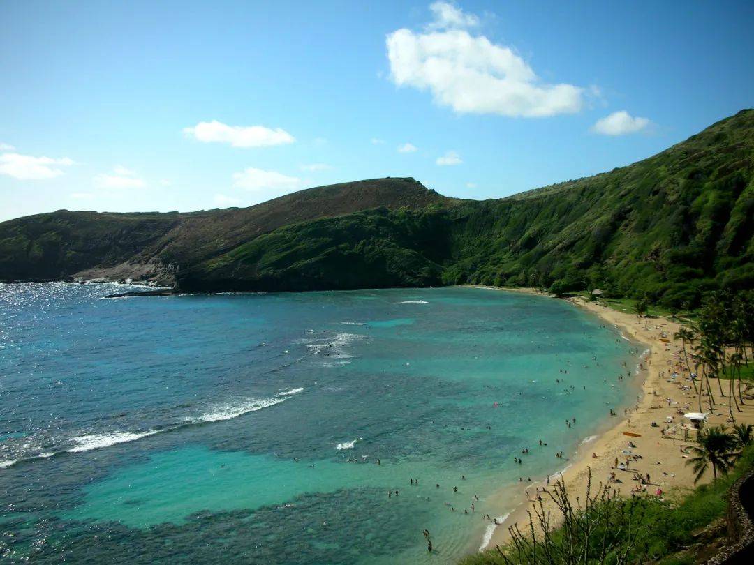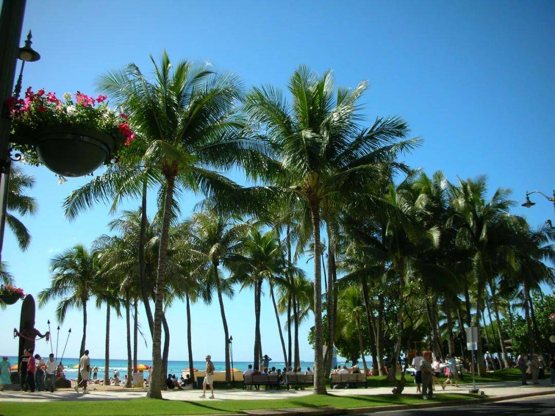 2007年,来到夏威夷威基基海滩。因整个夏威夷群岛都是太平洋海底火山喷发而成,其首府檀香山的海滩亦不例外呈黑色,且沙粒较粗,但并不影响游客戏水的兴致。阳光明媚、清澈见底、风平浪静的浅绿色海水对我有极大的诱惑力,已换好泳装把毛巾随手交妻,直向防波堤游去。站堤上放眼大洋,不顾风浪跳入,欲继续畅游。不料水下有巨石,浪高风大无法驾驭,被撞得生痛。极尽全力,返回堤岸,方晓不自量力之错,幸无大碍,逃过一劫。