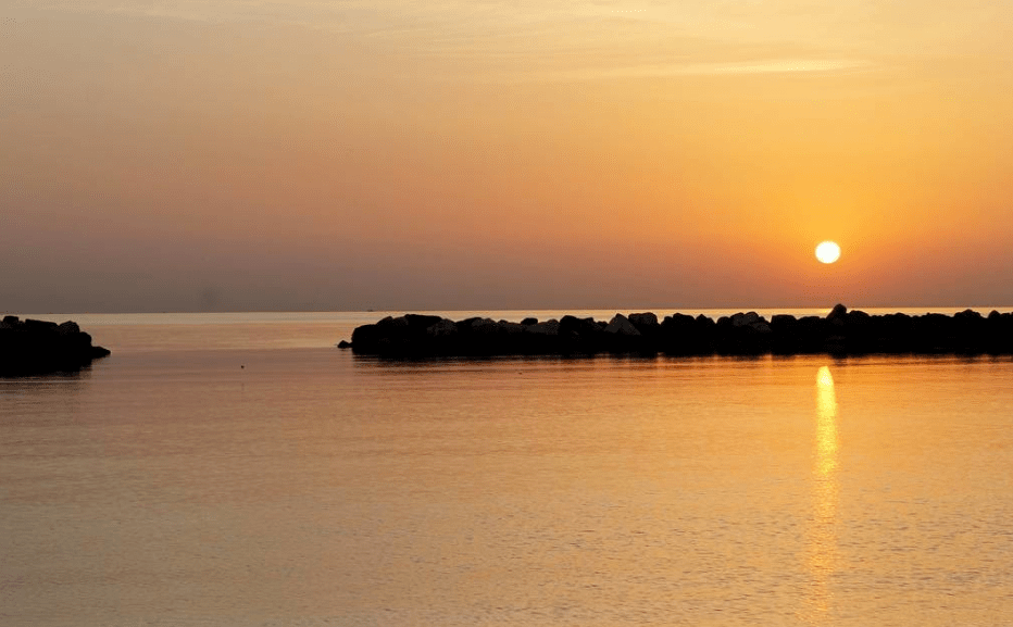 国门未开前,大陆沿海如青岛、三亚等地,自己也曾入海游过,那系近海。国外首次海泳在意大利里米尼的亚得里亚海。因天黑才到,知所住旅馆面对大海,早餐后将赴圣马力诺,故利用晨间早起片刻,穿泳装到海滩边观光趁机过把泳瘾。那里的沙很细,但坡度平缓,涉水百多米才至腰部,勉强划向深处。妻怕误餐,大声呼喊回来,只能泡了泡了事。亚得里亚海只是地中海的分支,不过也见识了当地浴场设施,比国内大得多也完善,算开了眼界。