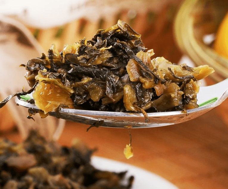 注:资中冬尖,历史悠久,相传为新罗高僧无相禅师携入;清末状元骆成骧带往北京,康有为、梁启超一行曾往四川会馆拜会新科状元骆成骧,骆公以资中冬尖做菜相款,引其赞叹;李莲英云:老佛爷亦闻香垂涎。目前,资中冬尖以丰源酿造厂所出为最,2008年5月7日,国家质检总局批准对资中冬尖实施地理标志产品保护。2011年,“丰源”资中冬尖生产工艺,被列入为四川省非物质文化遗产保护项目代表性名录。