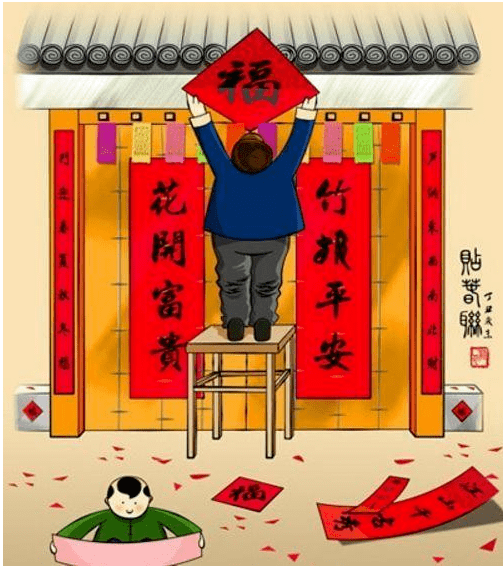 吃过饭,妈妈忙着洗碗收拾,爸爸用米汤贴好大红的对联、五彩的门神和年画,过年的氛围就更浓了。我和弟弟像尾巴一样跟着爸爸跑前跑后,等着他忙完,围着他双手一拱,笑嘻嘻地喊“恭喜发财!恭喜发财!”爸爸便拿出早已准备好的两张五角钱,给我们一人一张。