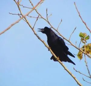 有时,在冬天也能看到老鸹。好多次在割猪草时,我就看见过两三只大老鸹从撮箕井底叼起一块巴掌大小的猪皮,越飞越高,慢慢飞出了撮箕井。