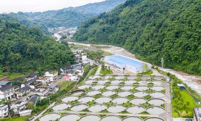 空中俯瞰雅安天全县生态冷水鱼产业园