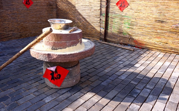 城郊一公里多的苦豪山后天老路傍,有座矮沓沓的瓦屋磨房。三架三柱、二墩穿方、木排立的屋架,努力撑着它苍老而摇摇晃晃的模样。没有几块遮风的板壁,敞得犹如一眼就看到人体的骨架。一架大青石碾,两陈大青石磨,一个木制脚踏面罗。它们或许只有几十年、上百年的历史,却隽写着祖先们开发水能、运用机械原理的智慧,到磨房推磨碾米,家乡人戏称“看转书”。细细咀嚼,石碾和石磨还真是农耕文明的“大部头”,旋转着生产力的进步,祖先的智慧。磨老板与附近的人相处融洽,水又是免费的劳动力,收费也不那么计较。所以,磨房的生意很好,新谷、新麦应季时忙得还要排轮子。