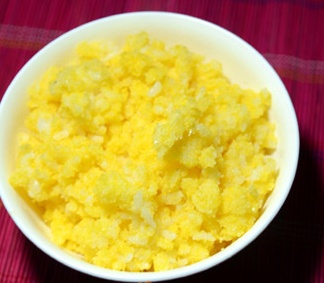 母亲有时还蒸半甑面饭,半甑米饭。他们吃粗的,我们吃细的。有时还会把洋芋切成小丁,和上玉米面蒸,调剂口味。就连早上的玉米馍,也改成隔天隔日,用洋芋丝加玉米面烙成“螃蟹”粑粑,或放少许糖晶做成玉米面发馍。一日三餐有了新口味,我没在因粗细粮愁眉不展。