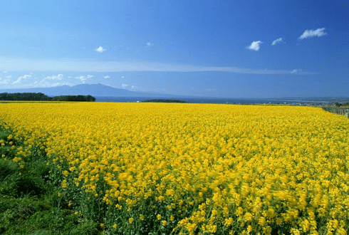 绵绵绿岭泛红霞,粉面含春朵朵花。