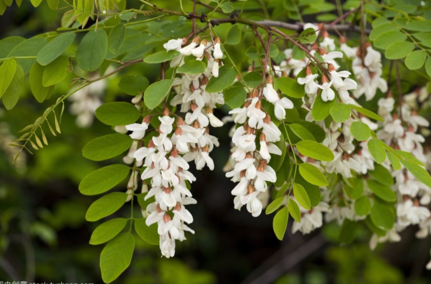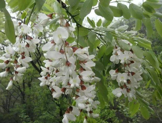 四月的乡野,刺槐花不可说不美。在我的眼中,其花呈嫩白,有如凝脂。挂在高高低低的槐枝上,缀在小钱似的绿叶间,一串一串的,如缀满小铃铛的别致风铃。每每看到它,就想起了茉莉,其花形不像茉莉,但花色类似,特别是香气,总认为是惊人相似。每当它开花,我就兴奋异常,远远地都要去路过,并做深呼吸,然后闭上眼睛,让那茉莉般香气从鼻径深入五脏六腑,再入丹田后直升脑门,最后长长地吐口气。这也正如你见到心仪的小家碧玉,也许她穿着青花的夹衣正静倚在阁楼的窗前,你故意绕道过其楼下,弄出点异样的响声。当她从沉思中惊醒,正要注视你时,你却挺直身板,吹着流行小曲大步流星,给她留下个青春张扬的背影,浑然不顾别人依枕思春。