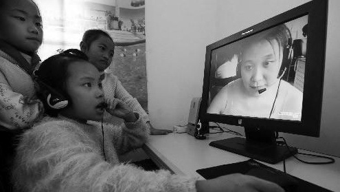 由台湾千乡万才集团捐赠的20台电脑全部安放在教学楼前的广场上,程序员老师打开了每台电脑的视频窗口。上百名留守儿童排队守候在电脑前面,他们紧紧地盯着闪烁跳跃的屏幕,心儿,早已飞向了遥远的父母身边。