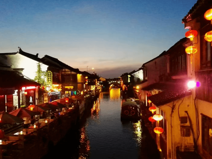 趁着夜色,冒着酷热,我们去到七里山塘。七里山塘被称为“姑苏第一名街”。红灯笼底下枕河人家的美丽至极。灯火阑珊,点一杯清茶,听一曲古色古香的评弹,令人陶醉。意犹未尽,我们去到平江路,穿越苏州旧时光。它没有七里山塘的喧嚣,只有江南女子的温婉。走在夜色下的平江路,有一种置身事外的幻觉,耳畔一直有薛凯琪那首《苏州河》单曲循环。