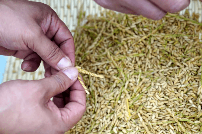 队长笑眯了:“对的,明年就栽这个袁隆平的杂交水稻”。